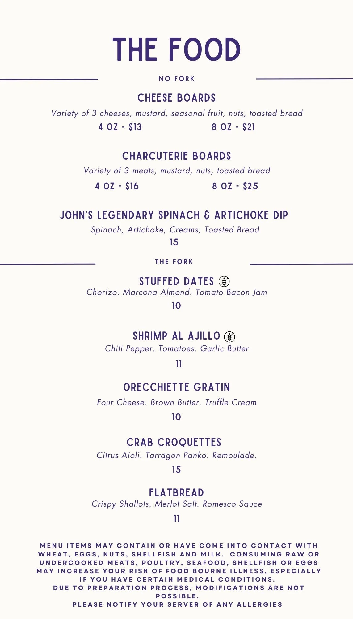 At The Cork @ CCF, we believe that great wine deserves to be paired with equally exceptional food. Our thoughtfully crafted menu, developed by our culinary team and owner, John Mahler, features a selection of small plates and shareable bites designed to complement and enhance our curated wine offerings. Each dish brings together bold flavors and delicate nuances that perfectly balance the depth and complexity of our wines. Whether you’re here for a light snack, a sweet treat, or something in between, we invite you to indulge in a culinary experience that celebrates the art of food and wine pairing.
